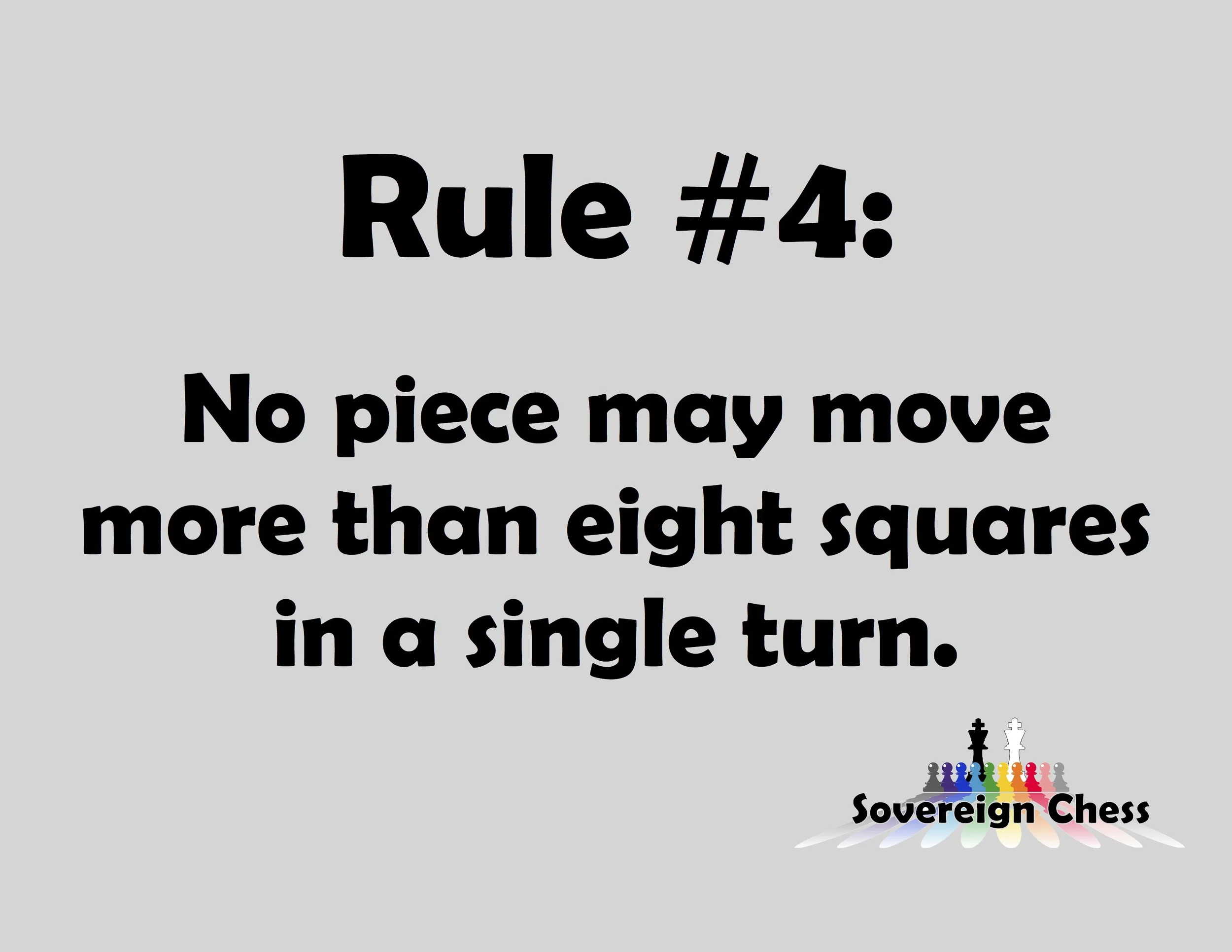 Besides keeping the movement of pieces in Sovereign Chess identical to those in traditional chess, on the larger 16 x 16 board, this rule serves to play a large role in strategy. First, limiting the range of pieces eliminates the temptation for a player to sweep his queen or rook across the board to attack his opponent, were the opportunity to arise.